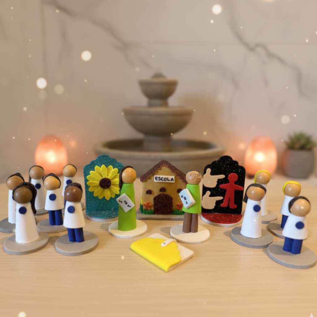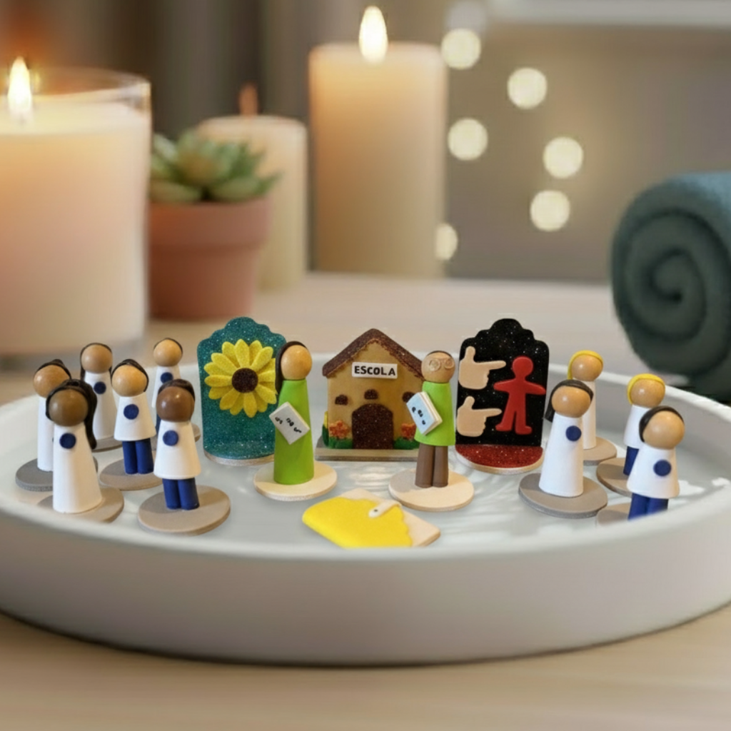 Kit Pedagógico 3D foi desenvolvido para representar o universo escolar dentro das constelações familiares e terapias sistêmicas.