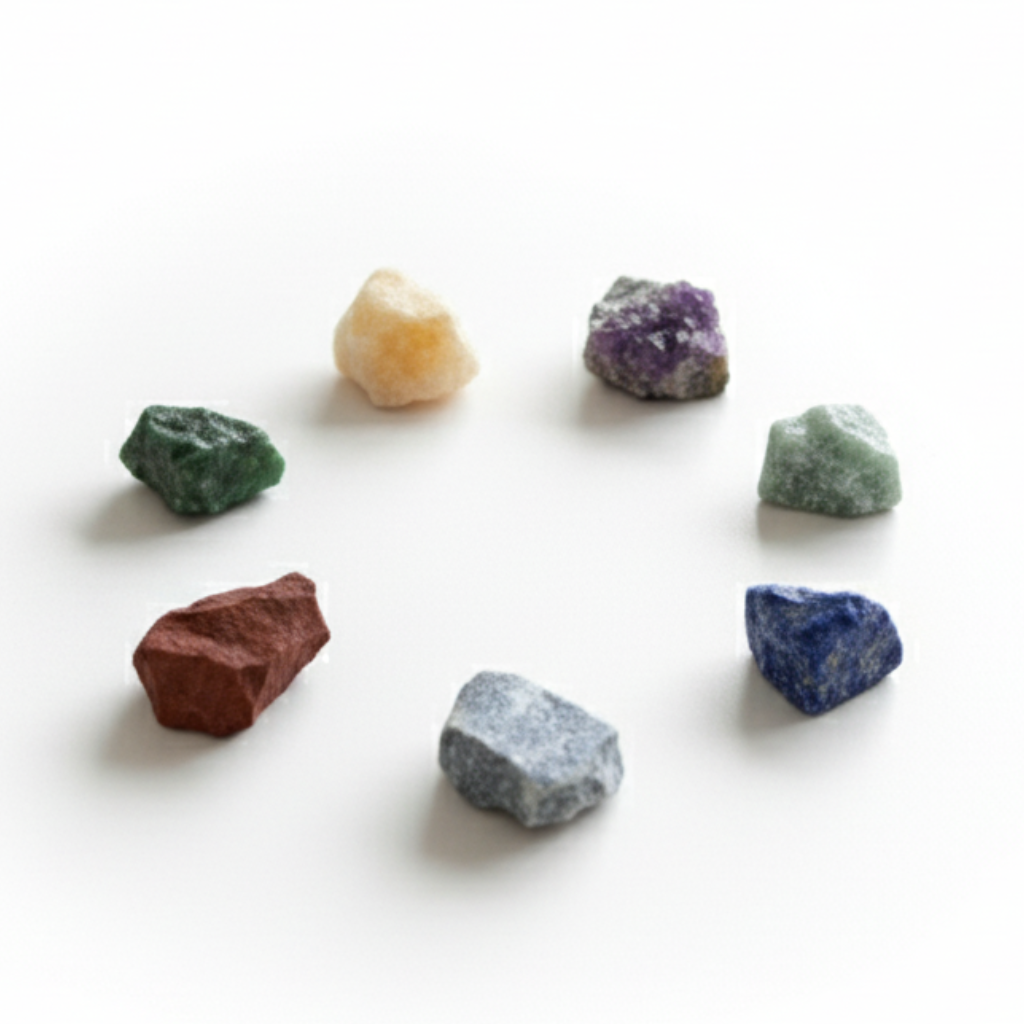 Cada pedra vibra em sintonia com um centro energético específico, promovendo cura emocional, equilíbrio espiritual e bem-estar físico.