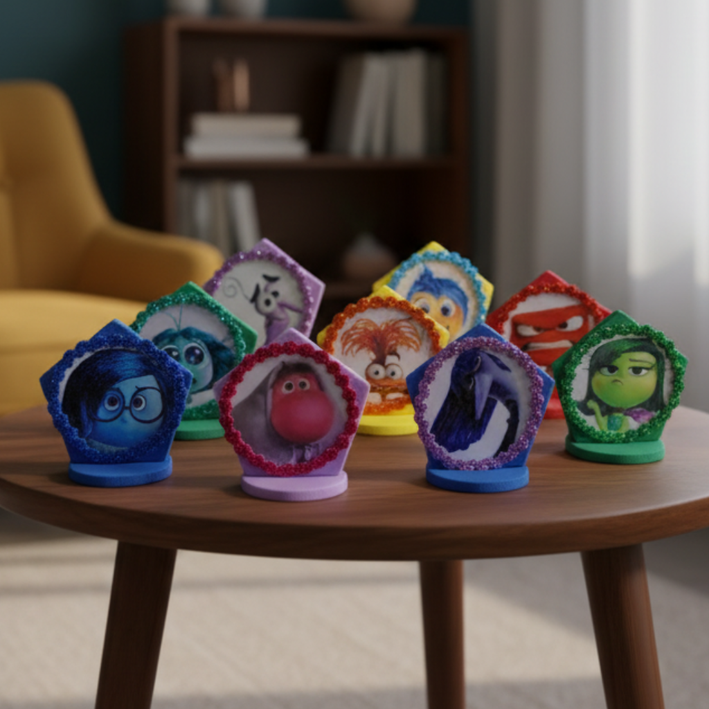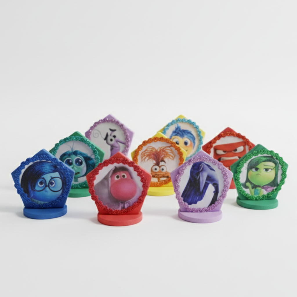 Inspirados no filme Divertidamente, estes bonecos terapêuticos foram criados para auxiliar crianças na identificação e expressão de suas emoções. Alegria, tristeza, raiva, medo, inveja, vergonha, tédio, ansiedade e nojo — sentimentos universais que, de forma lúdica, ajudam a nomear e compreender o mundo emocional infantil.