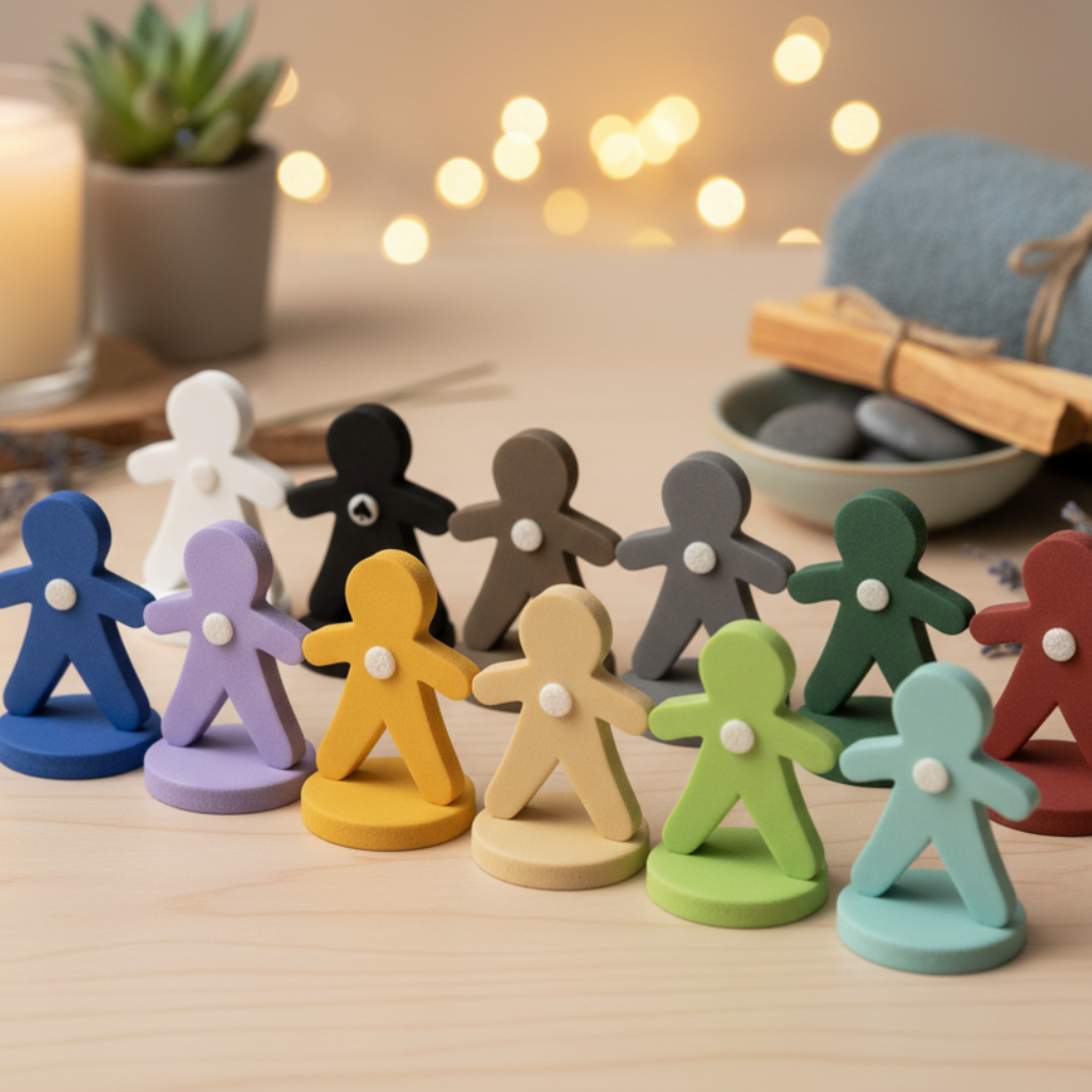 Kit 18 Peões pra Água foi criado especialmente para consteladores e terapeutas que desejam explorar o campo sistêmico de forma leve, fluida e intuitiva.