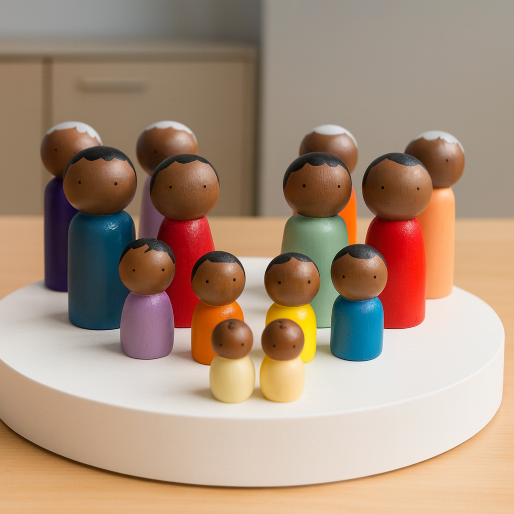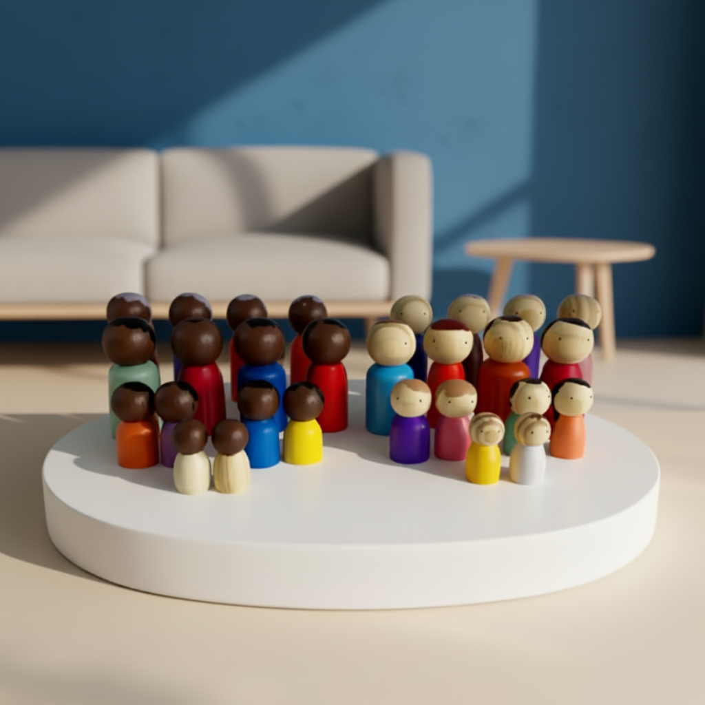 Um conjunto completo e funcional para constelações individuais, em grupo, psicoterapia ou pedagogia sistêmica.