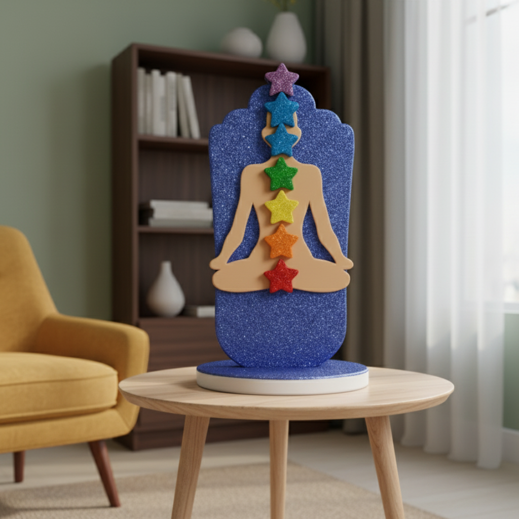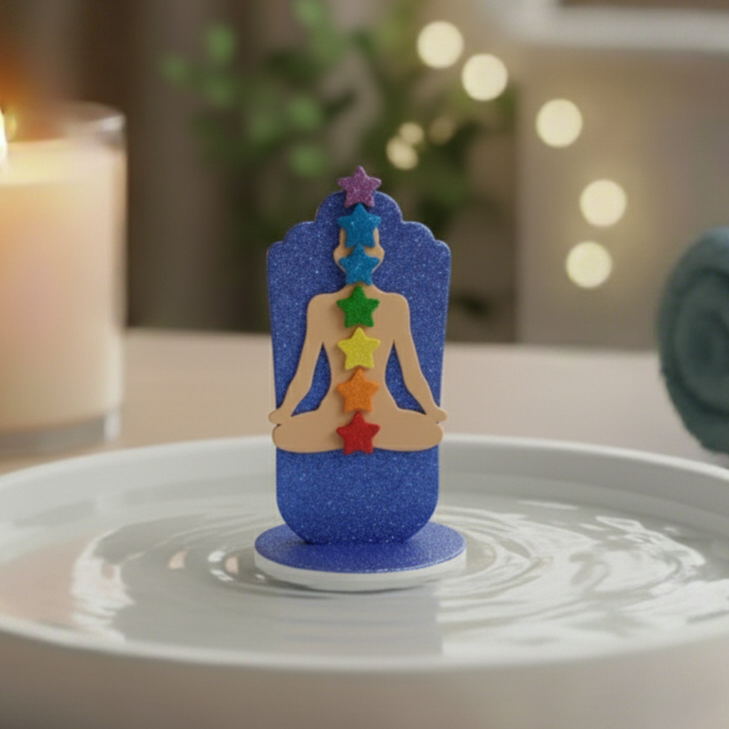 Produzido artesanalmente em EVA emborrachado, flexível, leve e totalmente resistente à água, o boneco flutua suavemente, acompanhando o movimento natural da constelação aquática. Cada peça é única, feita à mão com atenção e intenção de cura, simbolizando a leveza e a harmonia dos centros energéticos alinhados.