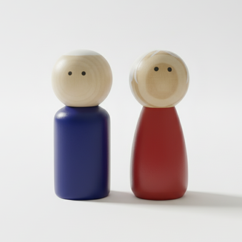 Produzido em madeira nobre e envernizada, com acabamento artesanal e toque suave, o boneco possui olhinhos pintados, corpo colorido e cabelinho grisalho, expressando respeito e delicadeza nos detalhes.