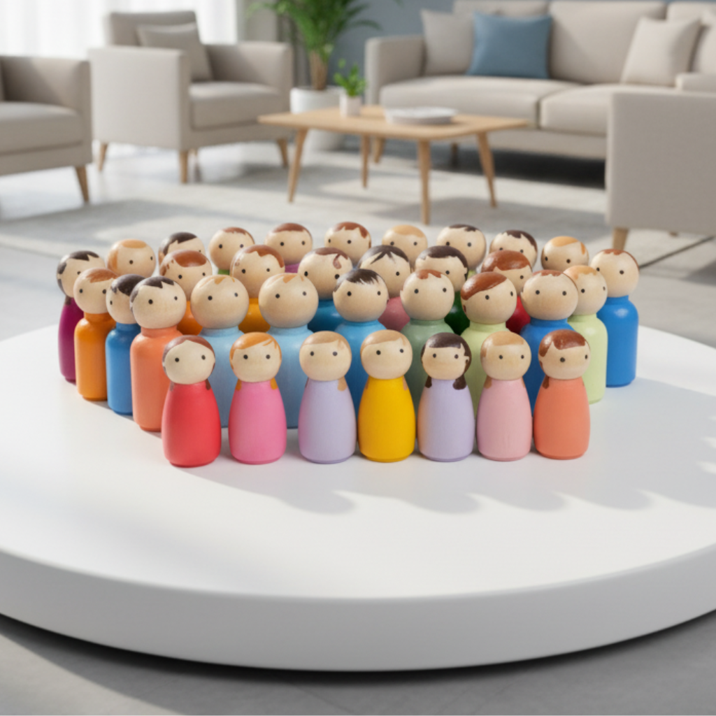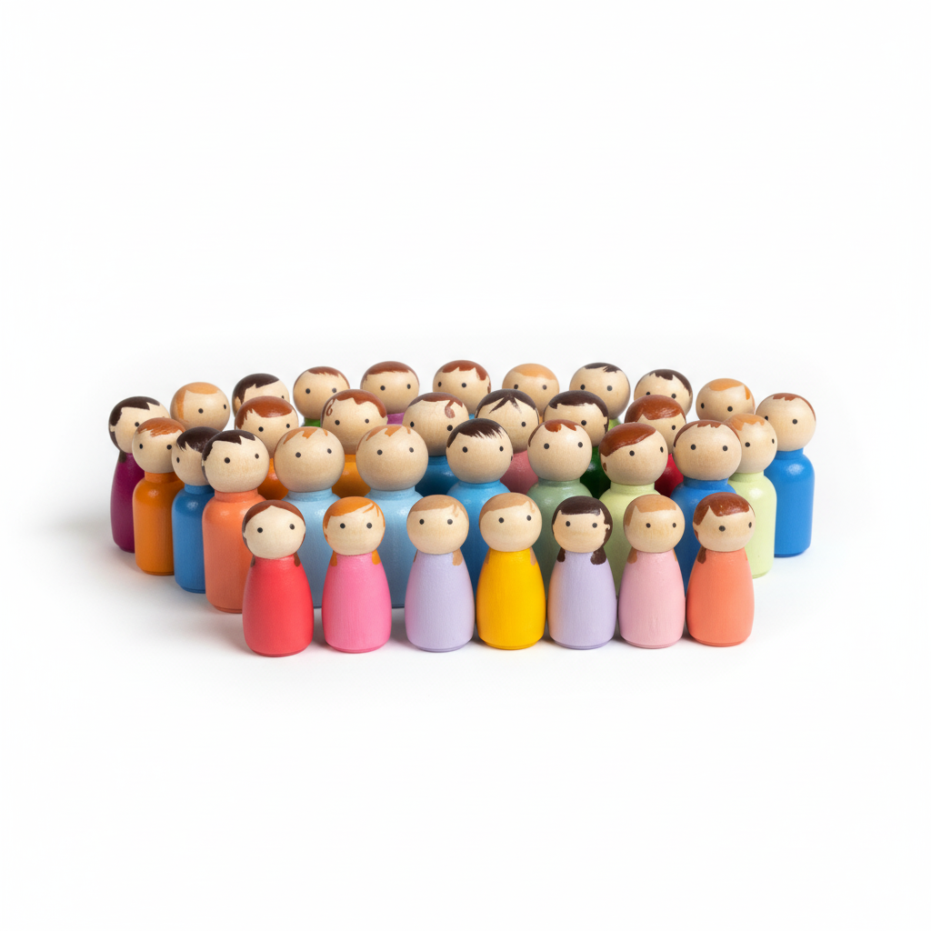 Kit de 28 Bonecos Pequenos de Madeira -Bert- Bonecos para Constelação Familiar