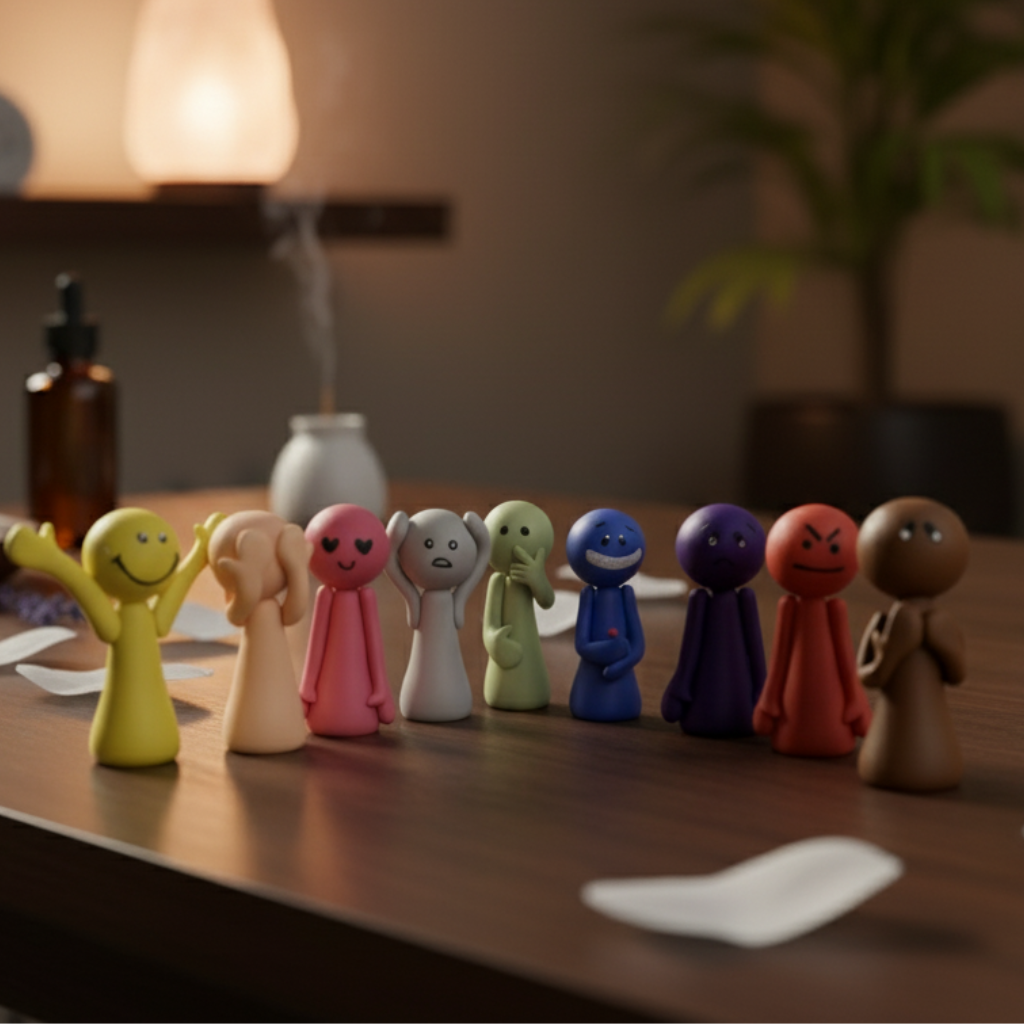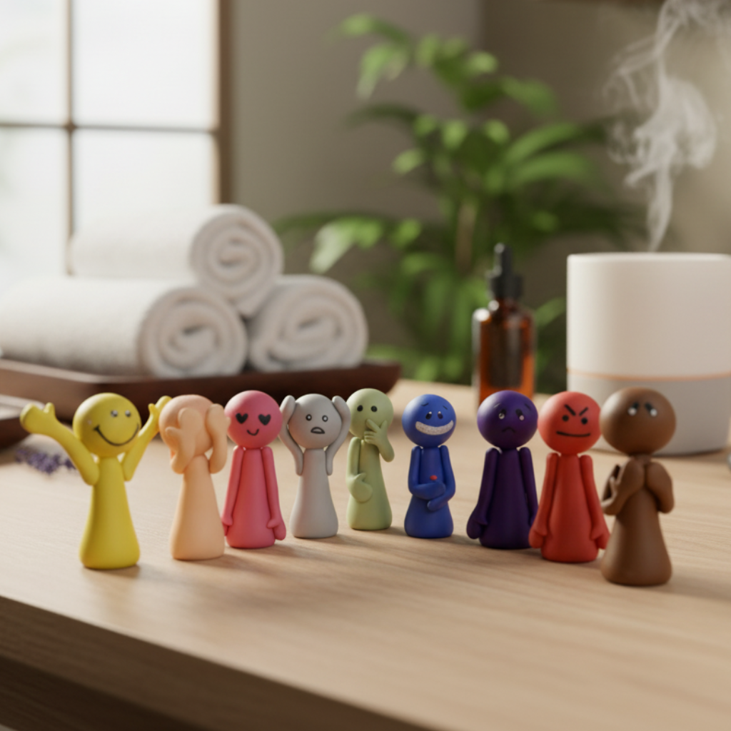 O Kit 9 Emoções foi criado para representar os principais estados emocionais humanos dentro das práticas de constelação familiar, psicologia e terapias lúdicas.