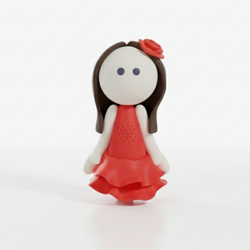 Cada peça é modelada à mão, com acabamento detalhado e pintura inspirada nas vestes tradicionais ciganas.