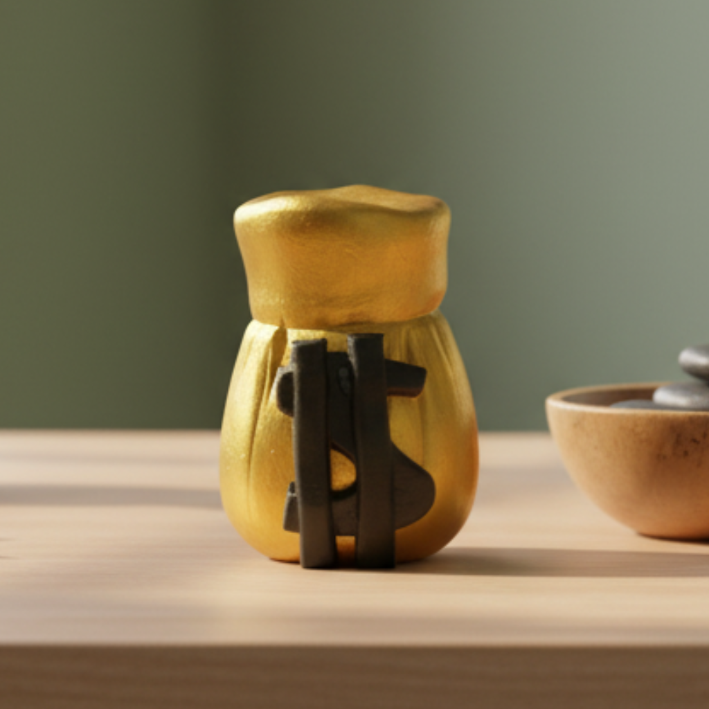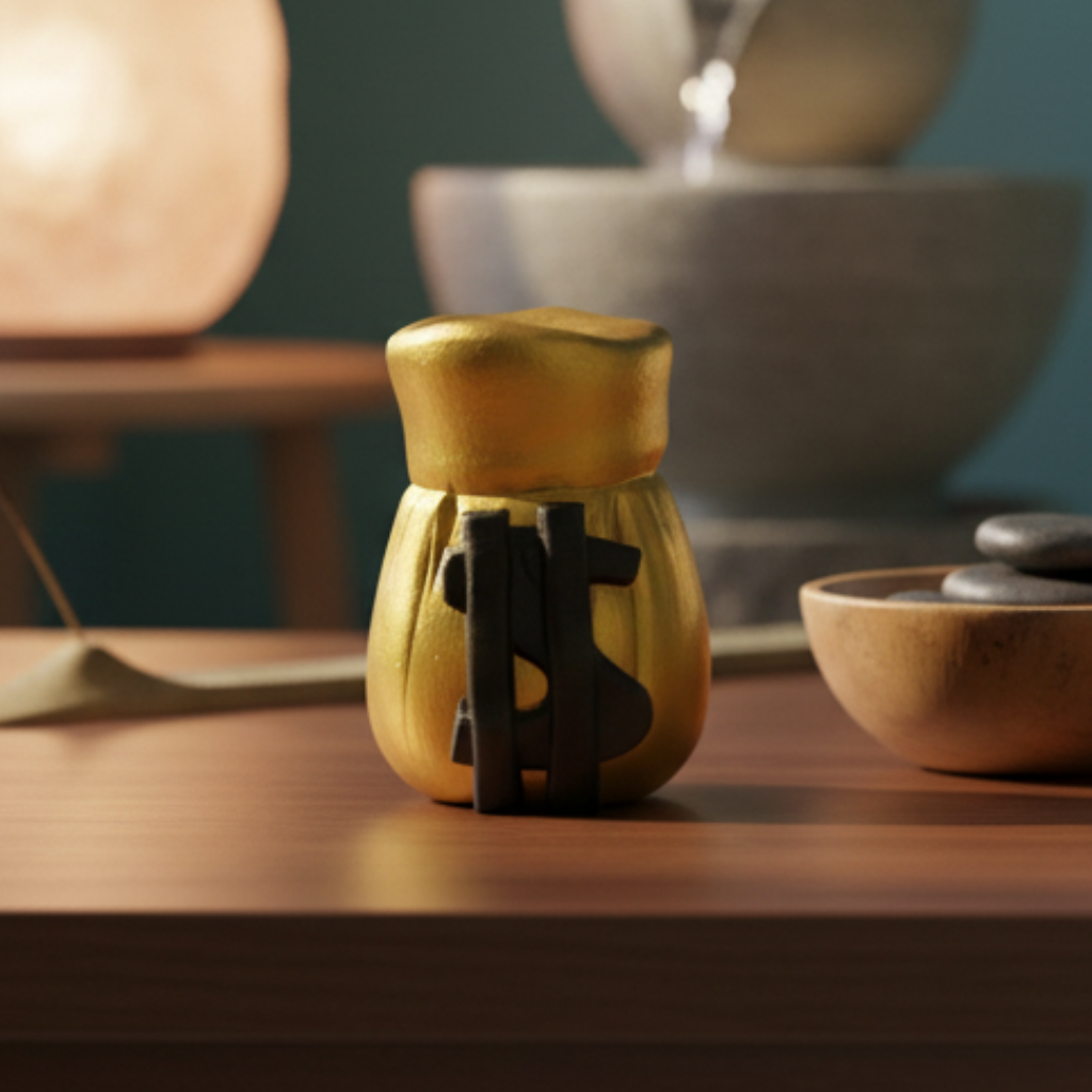 Modelado à mão em porcelana fria (biscuit), ele ajuda consteladores e terapeutas a trabalhar dinâmicas relacionadas a finanças, merecimento, escassez e bloqueios na prosperidade, trazendo consciência e equilíbrio ao campo sistêmico.