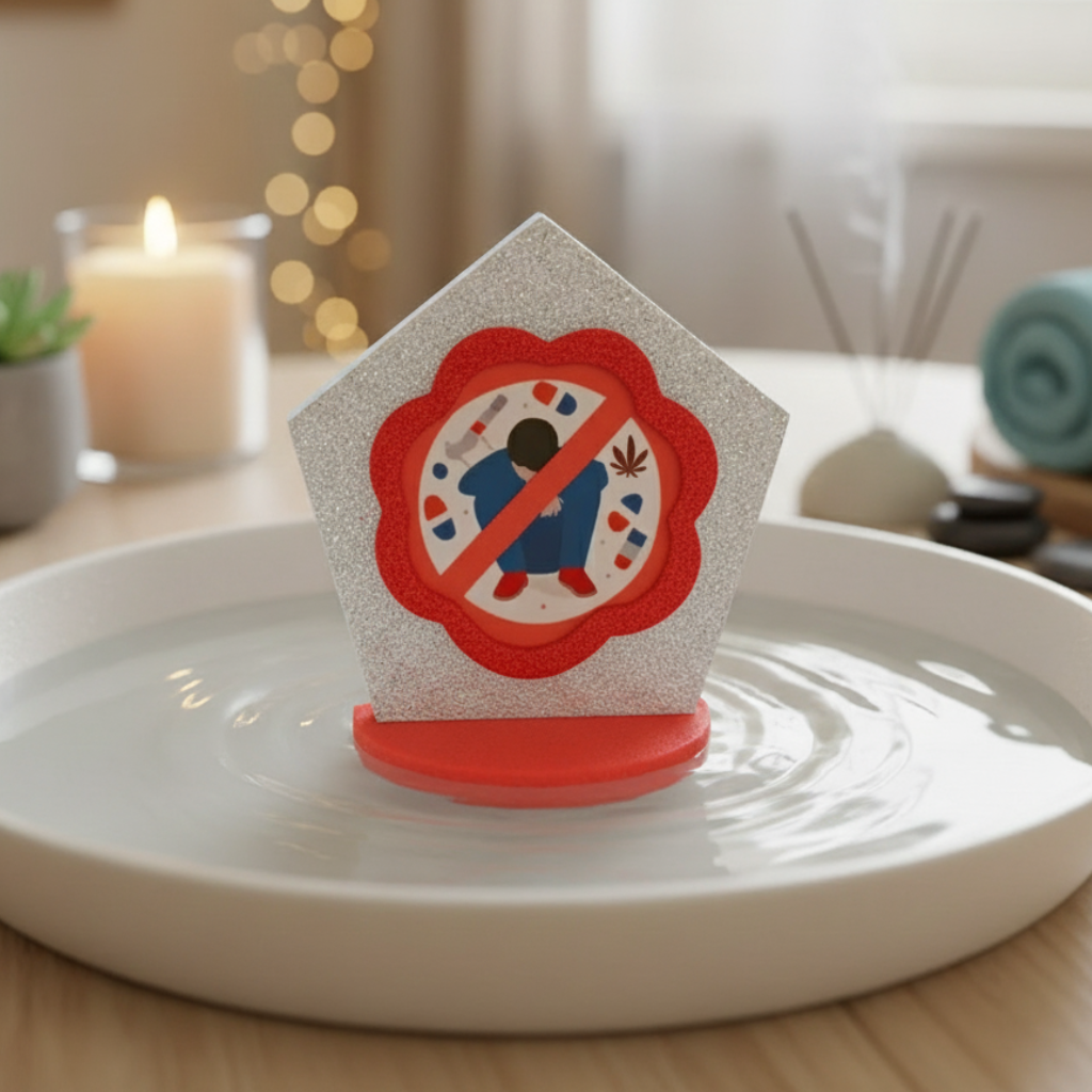 Feito em Etileno Acetato de Vinila (EVA) — um material leve, flexível e resistente à água —, o Representante Vícios 3D flutua naturalmente, permitindo observar os movimentos simbólicos de cura no campo constelatório.